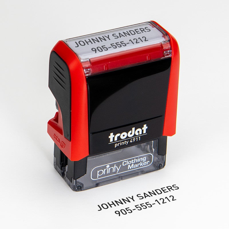 Easily mark & identify your clothing with this 2 line custom clothing marker stamp. Ink is specially formulated for fabric. Great for military personnel, schools, day cares, dorms and homes with roommates.