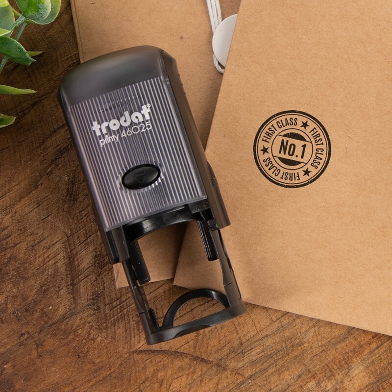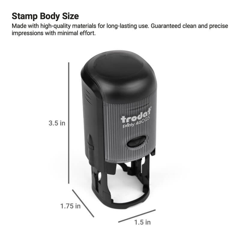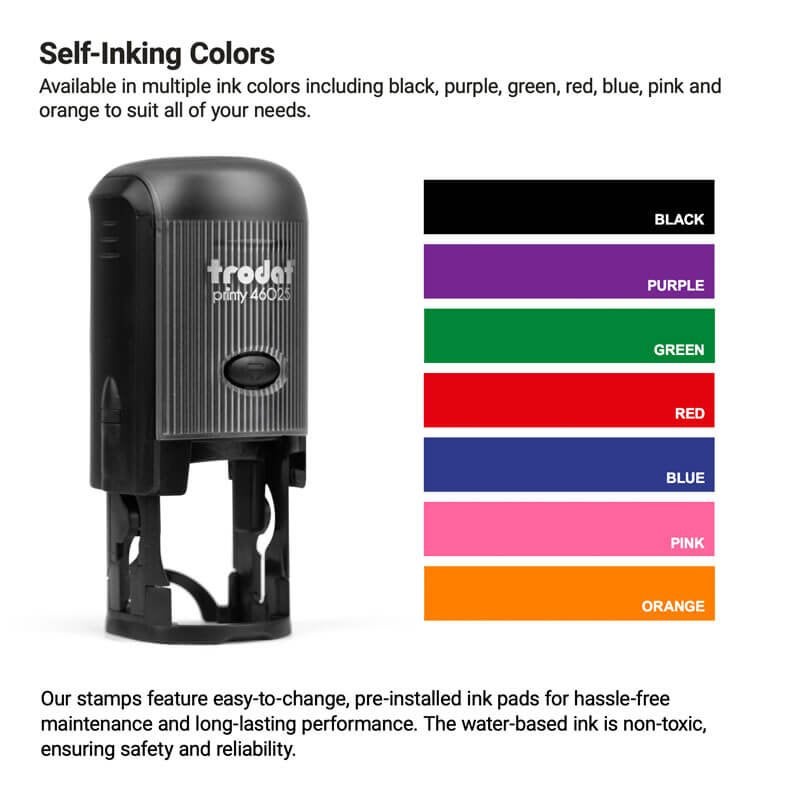 Need a round stamp you can easily customize? With the help of our design wizard, you can create your own rubber stamp in a few easy steps. Add your name, logo, address, or any other information. This custom round stamp offers a versatile solution for a variety of applications.