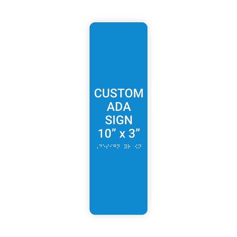 This Vertical ADA sign adheres to the following ADA guidelines: Braille must be centered directly under the text, but must have at least 5/8" space on both sides Text should be in ALL CAPS (unless explaining directions) and should be in block type font (Helvetica, Arial, etc.) Text must not be more than 2" tall and must be at least 5/8" tall The Vertical ADA Sign follows proper ADA guidelines and is vital to your home or business. Order your Vertical ADA sign now!