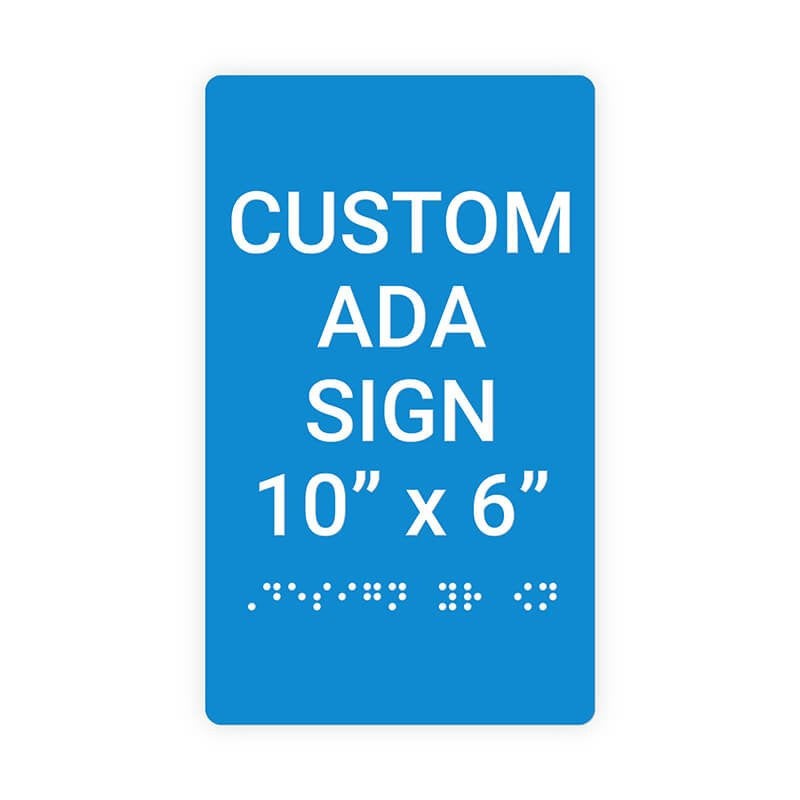 This Vertical ADA sign adheres to the following ADA guidelines: Braille must be centered directly under the text, but must have at least 5/8" space on both sides Text should be in ALL CAPS (unless explaining directions) and should be in block type font (Helvetica, Arial, etc.) Text must not be more than 2" tall and must be at least 5/8" tall The Vertical ADA Sign follows proper ADA guidelines and is vital to your home or business. Order your Vertical ADA sign now!