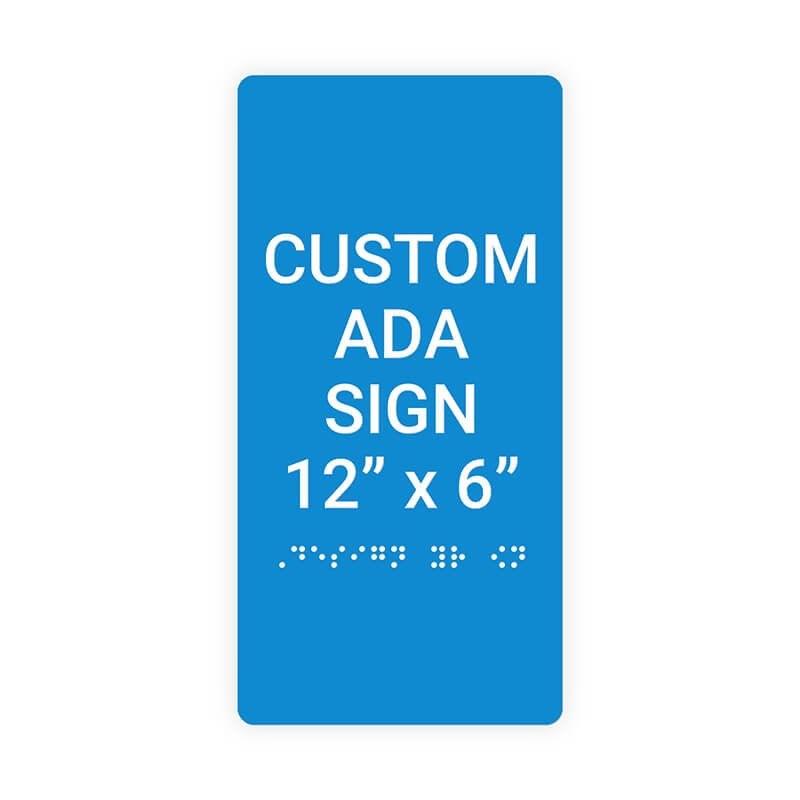 This Vertical ADA sign adheres to the following ADA guidelines: Braille must be centered directly under the text, but must have at least 5/8" space on both sides Text should be in ALL CAPS (unless explaining directions) and should be in block type font (Helvetica, Arial, etc.) Text must not be more than 2" tall and must be at least 5/8" tall The Vertical ADA Sign follows proper ADA guidelines and is vital to your home or business. Order your Vertical ADA sign now!