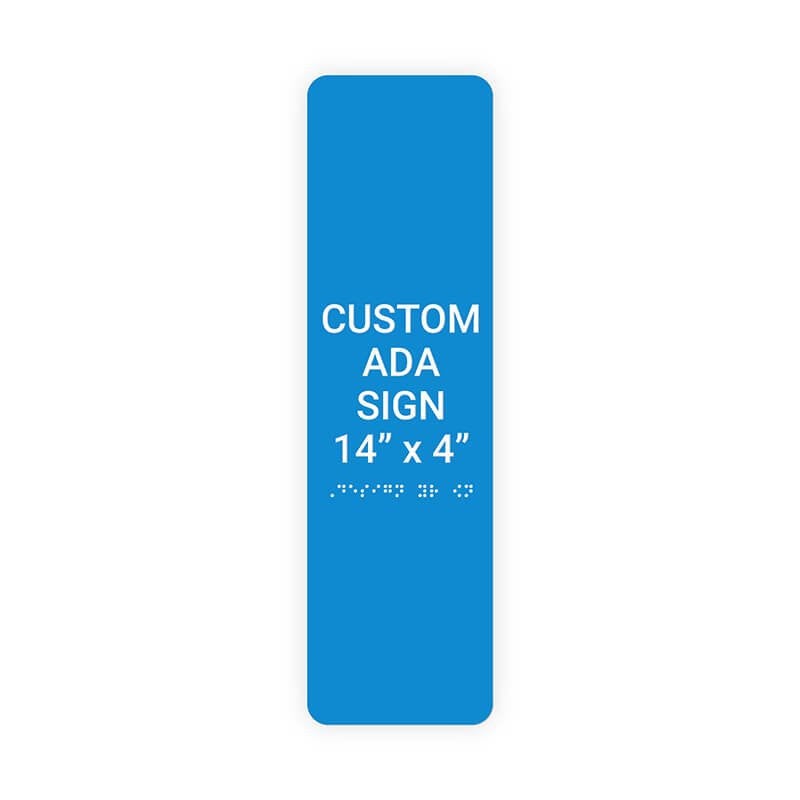 This Vertical ADA sign adheres to the following ADA guidelines: Braille must be centered directly under the text, but must have at least 5/8" space on both sides Text should be in ALL CAPS (unless explaining directions) and should be in block type font (Helvetica, Arial, etc.) Text must not be more than 2" tall and must be at least 5/8" tall The Vertical ADA Sign follows proper ADA guidelines and is vital to your home or business. Order your Vertical ADA sign now!