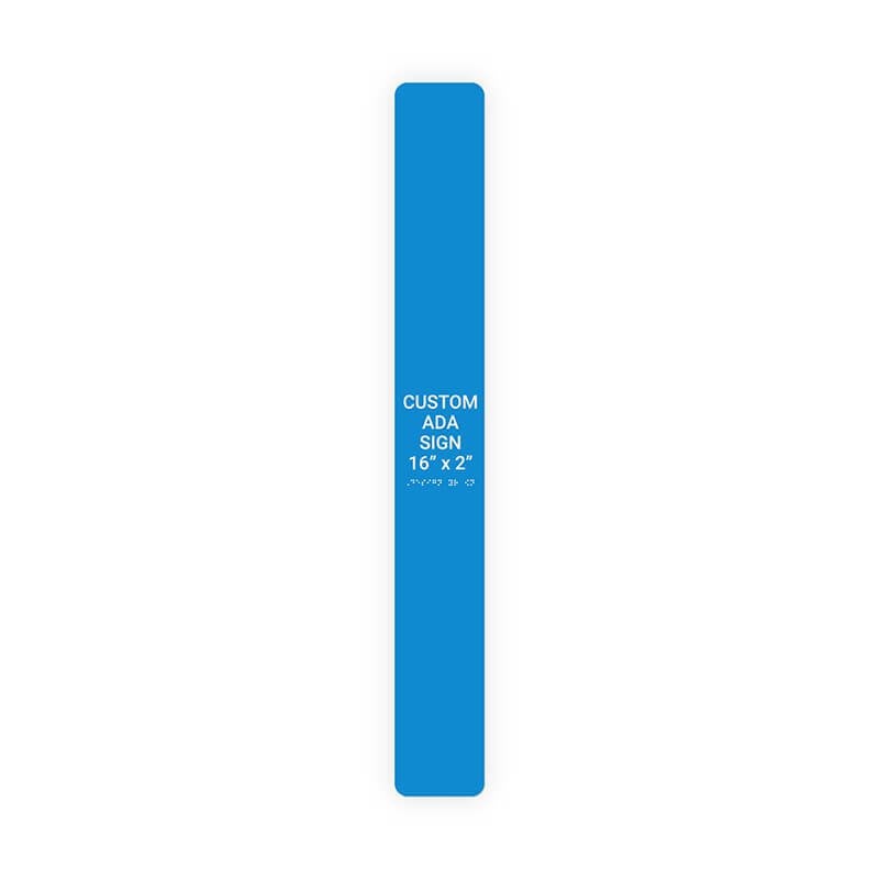 This Vertical ADA sign adheres to the following ADA guidelines: Braille must be centered directly under the text, but must have at least 5/8" space on both sides Text should be in ALL CAPS (unless explaining directions) and should be in block type font (Helvetica, Arial, etc.) Text must not be more than 2" tall and must be at least 5/8" tall The Vertical ADA Sign follows proper ADA guidelines and is vital to your home or business. Order your Vertical ADA sign now!