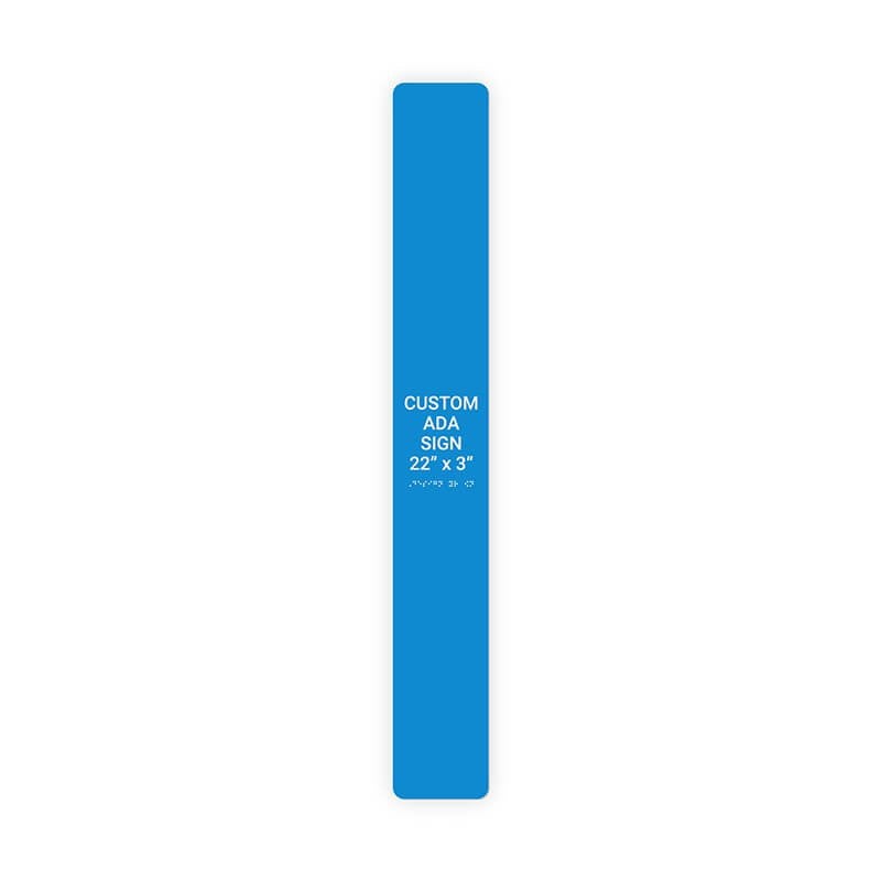 This Vertical ADA sign adheres to the following ADA guidelines: Braille must be centered directly under the text, but must have at least 5/8" space on both sides Text should be in ALL CAPS (unless explaining directions) and should be in block type font (Helvetica, Arial, etc.) Text must not be more than 2" tall and must be at least 5/8" tall The Vertical ADA Sign follows proper ADA guidelines and is vital to your home or business. Order your Vertical ADA sign now!