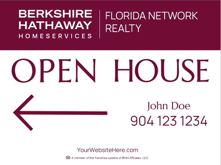 Berkshire Hathaway HomeServices Custom Realtor Open House Yard Sign 18"x24" - Cabernet