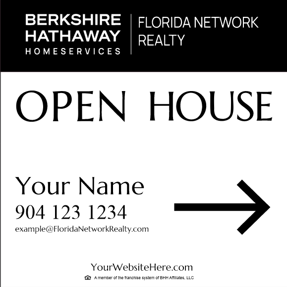 - Berkshire Hathaway HomeServices Realtor Black/White Side Arrow Open House Yard Sign 24"x24" - No Photo (Stake Included)