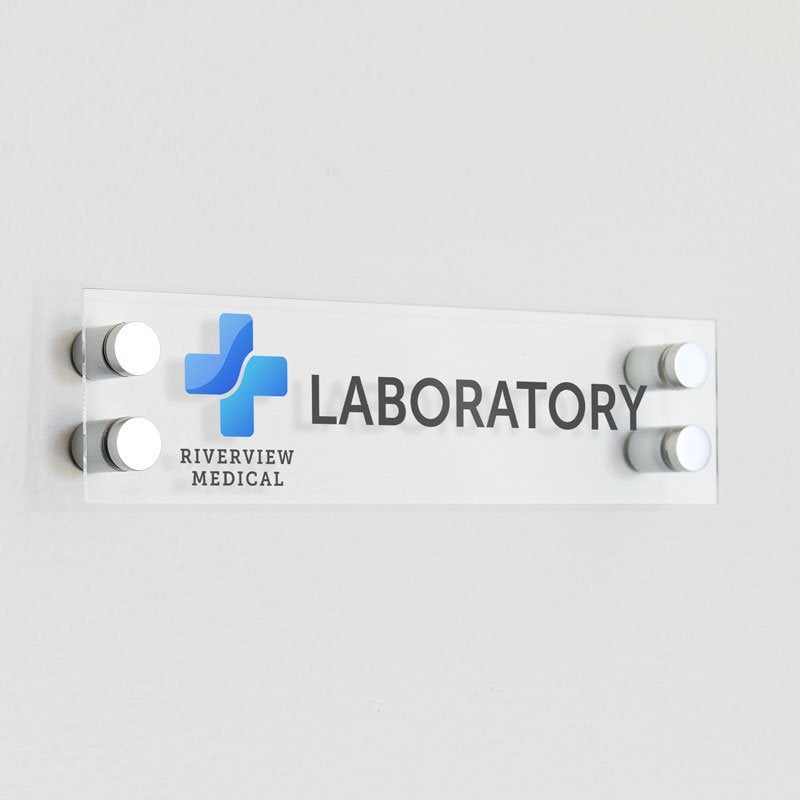 - Acrylic Sign Uses: Clear acrylic signs are ideal for a modern looking office. Use acrylic signs for wayfinding, room numbers, and company logo signs.
