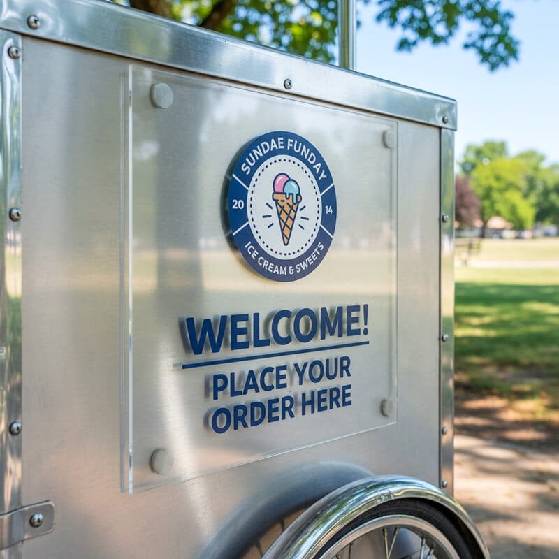 - Second Surface Printing: The UV ink is applied to the back side of the acrylic sign. This creates depth and protects the ink from scratching.