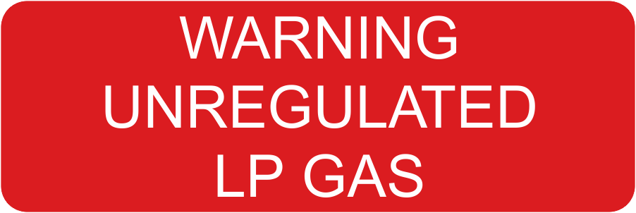 - CTP Warning Unregulated LP Gas – Red with White Text, 1 x 3 w/ Adhesive Tape