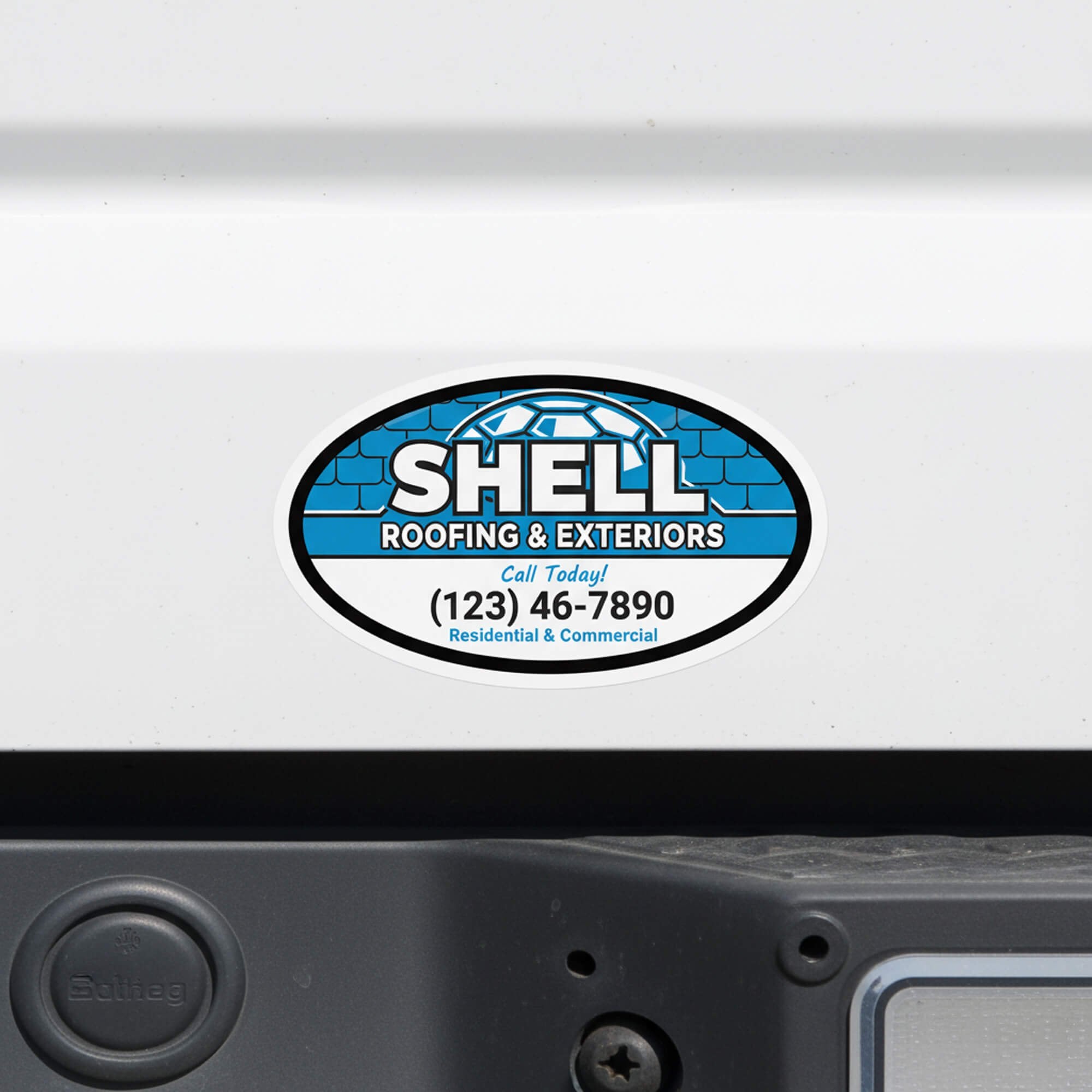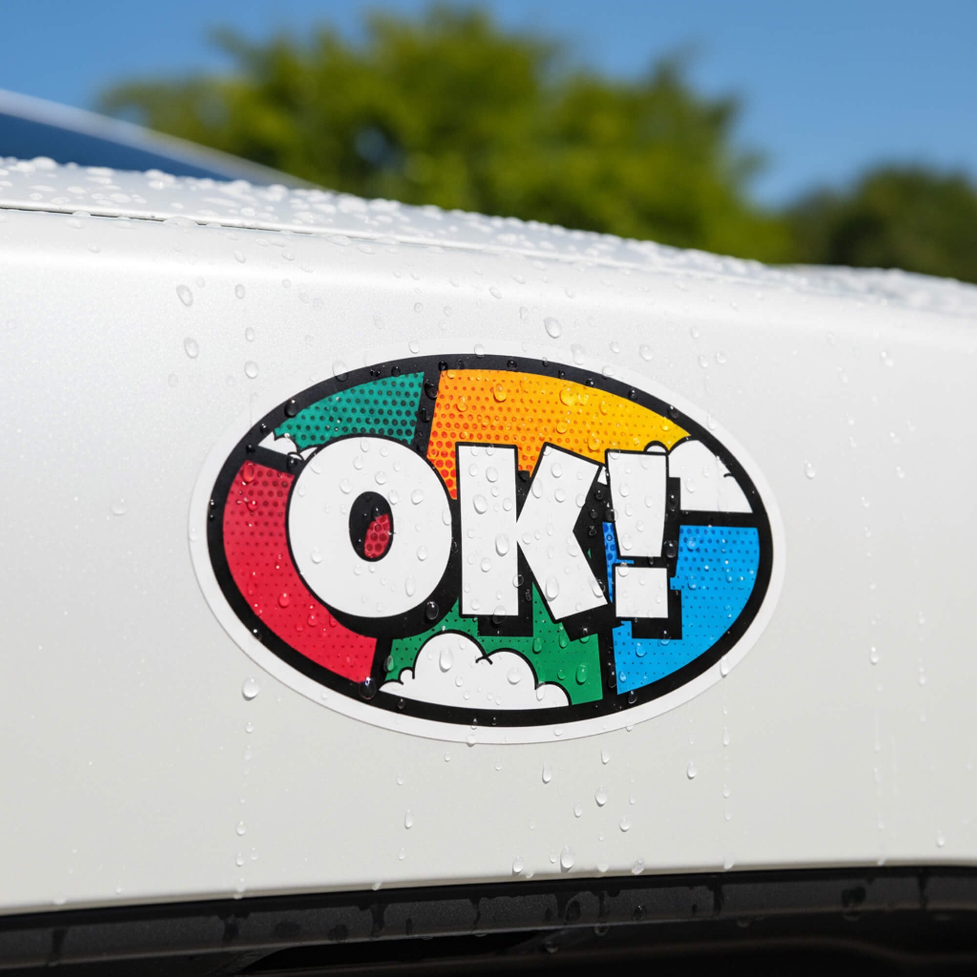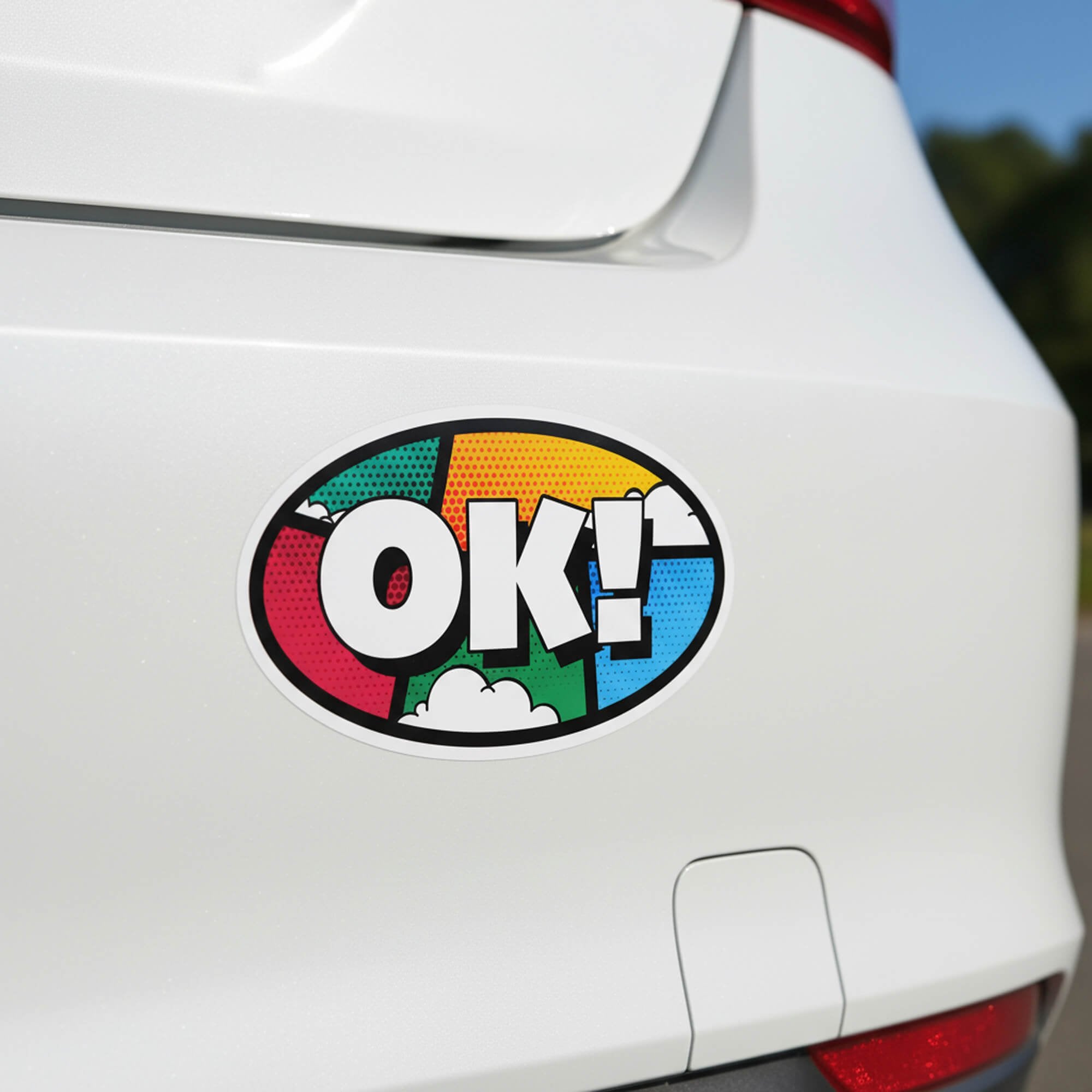 - Oval sticker measures approximately 3" x 5"