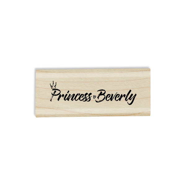 Give your cards and craft the love and attention you give your baby girl! This fun princess custom baby name stamp features masterful writing separated by a tiny yet distinct heart. This stamp will let everyone know who your little princess is. Choose from several ink colors for this craft stamp and make it all yours.
