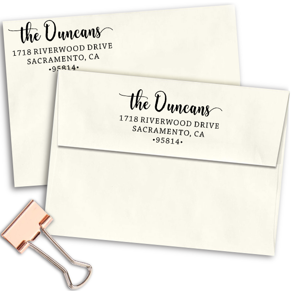 Give your clients a closing gift that commemorates their new home! Our Duncan Script European Address Stamp Gift makes a perfect closing present. This custom gift showcases their new address in a stylish design!