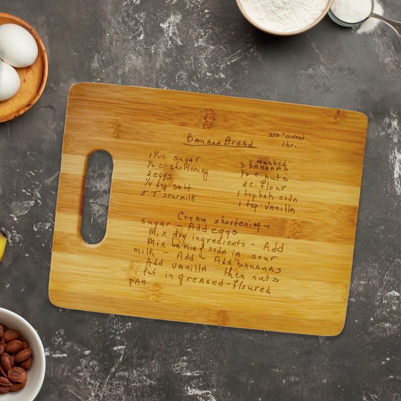 Celebrate your anniversary by engraving a romantic note for your spouse. Design a charcuterie board with a list of your favorite cheeses. Keep a favorite recipe on hand by adding it to the board you order. Let your imagination and passion for cooking guide you as you plan your customized cutting board.