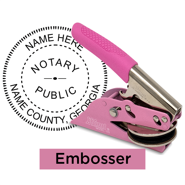 Round Georgia pink notary seal available in or with the following options: