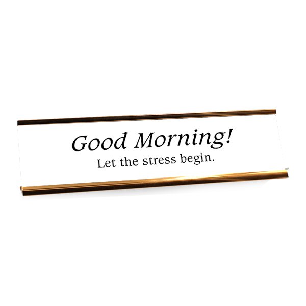 - Good Morning! Let the Stress Begin 2" x 8" Desk Plate