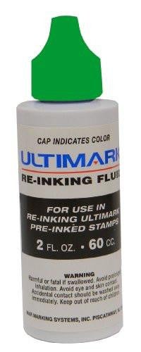 Sadly but truly ink runs out. Is your pre-inked stamp drying up or not leaving the best impressions that a splash of ink couldn't solve? Order your GREEN Ultimark 2 oz. ink refill bottle online today!