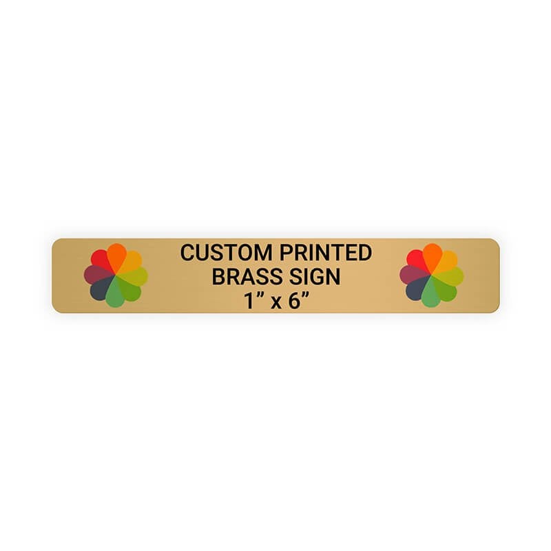 Our 1" x 6" Horizontal Full Color Brass Signs add a cohesive, professional look to any office space. Includes several customization options, including full-color logo and optional UV coating, and can be installed practically anywhere!