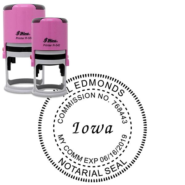 Round Iowa pink notary seal available in or with the following options: