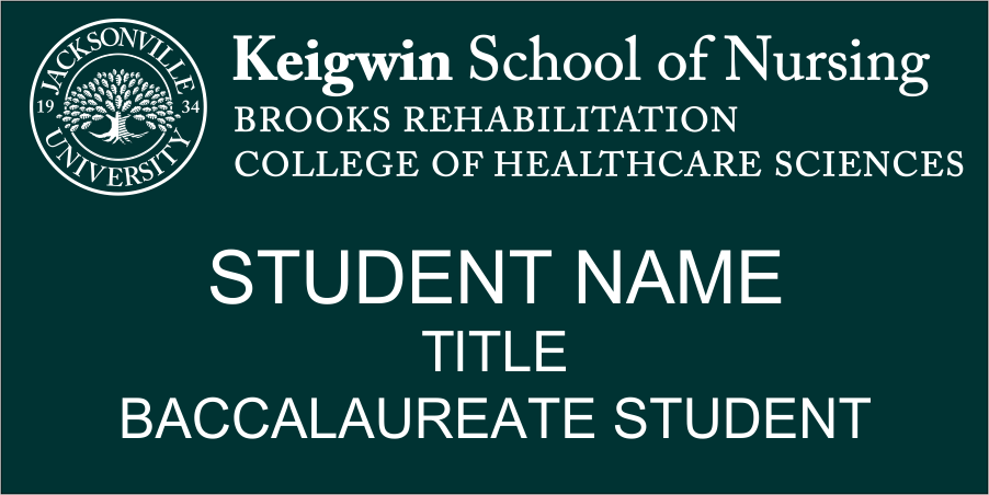 Jacksonville University Nursing 3-line Name Tag with Logo