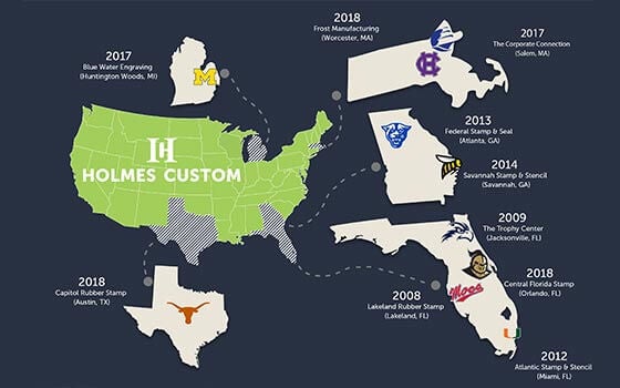 Are you next? We made our first acquisition in 2009 with a company called Lakeland Rubber Stamp. The previous owners, Tom and Doug, were in their mid-seventies and looking to retire. We were so pleased to take on their customer base and provide their customers with exceptional service and quality product; and Tom and Doug were pleased that their years of hard work didn’t go to waste and the customers that they had spent years getting to know, were taken care of. It was a match!
