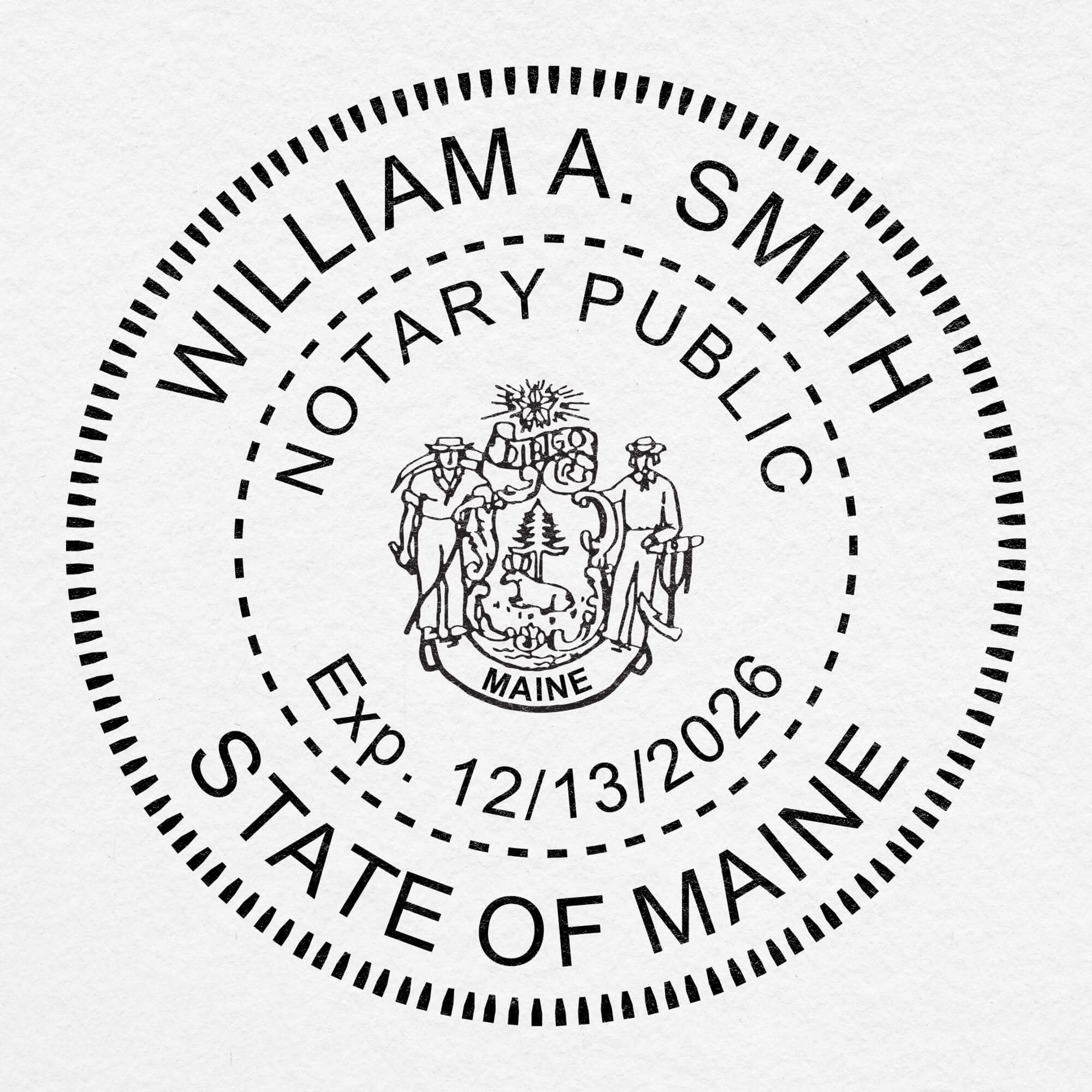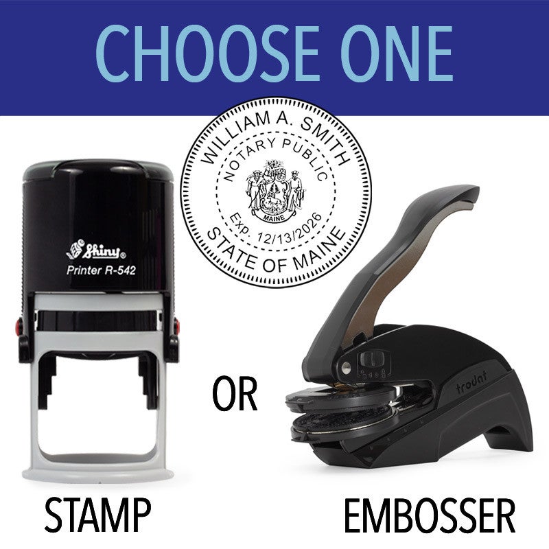 Round Maine notary seal available in or with the following options: