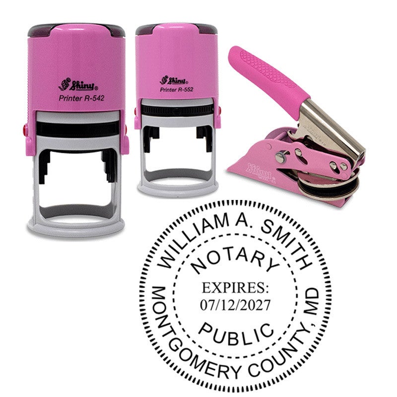 Ensure your notary seal is up-to-date with HC Brands' Maryland Notary Pink - Round Design. Our notary seal is made to meet the required Maryland design standards. We make it easy to quickly customize your notary seal in order to stay within local laws and regulations. Keep your notary equipment updated with HC Brands.