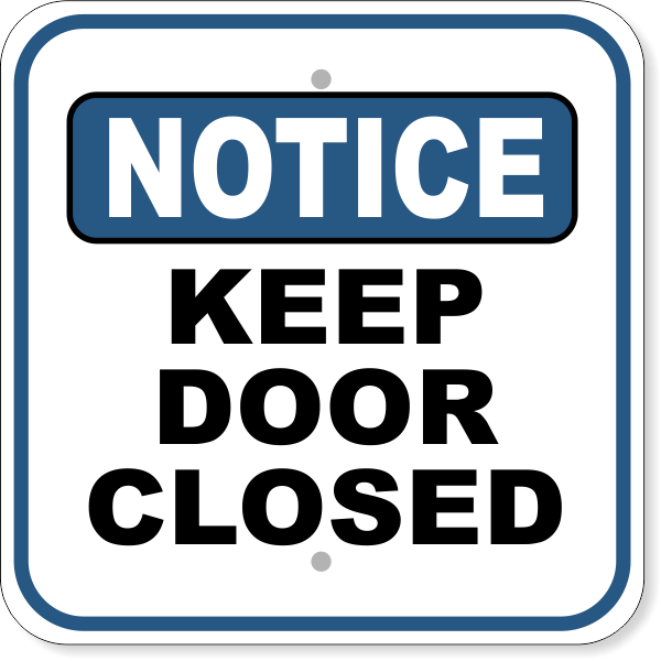 - Notice Keep Door Closed 12" x 12" Aluminum Sign