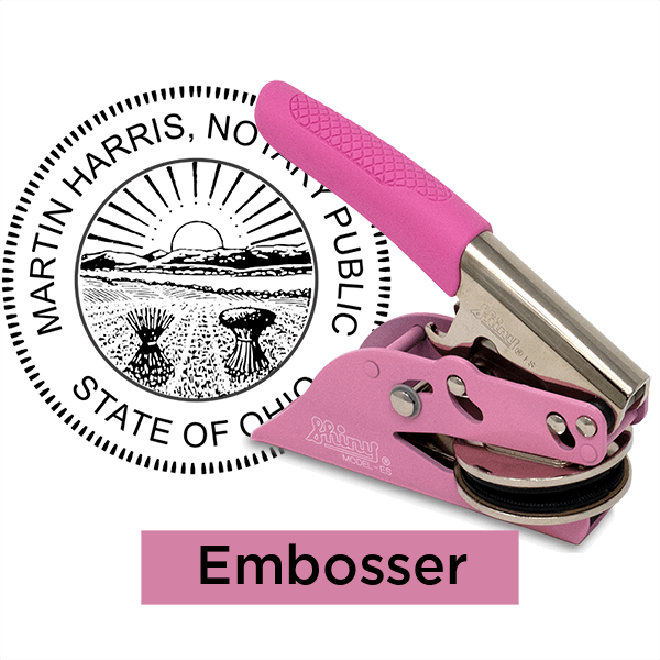 Round Ohio pink notary seal available in or with the following options: