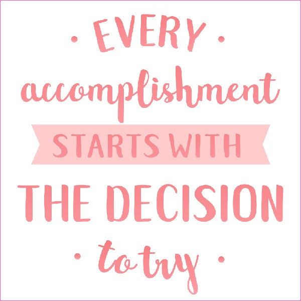 Sometimes you just have to take baby steps – even if the task is daunting. "Start with the decision to try" will remind you that's what you need to do. Just try. Hang this wherever you need some motivation. Makes a great graduation gift!
