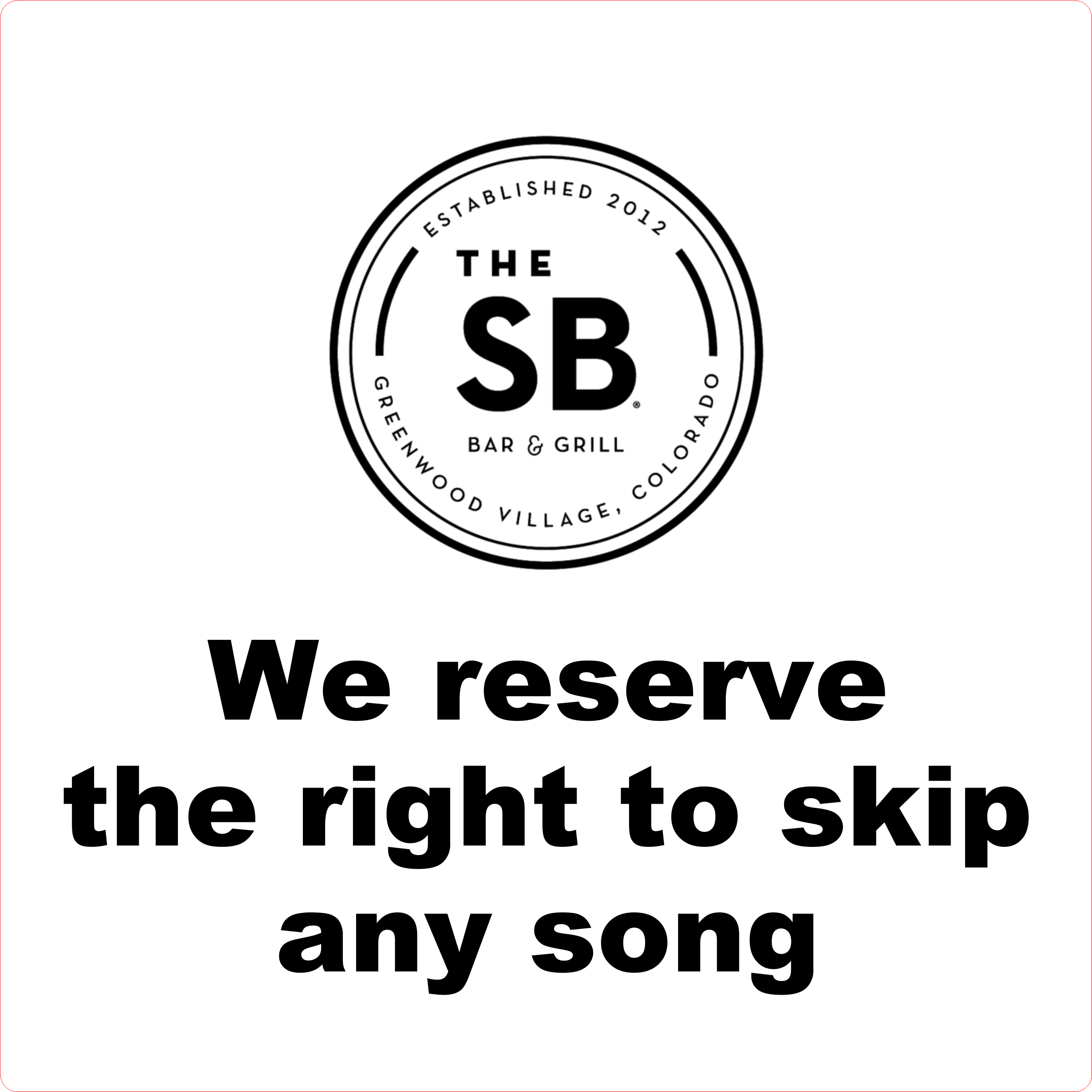 - The SB Bar & Grill "Right to skip any song" 8x8 UV Sign