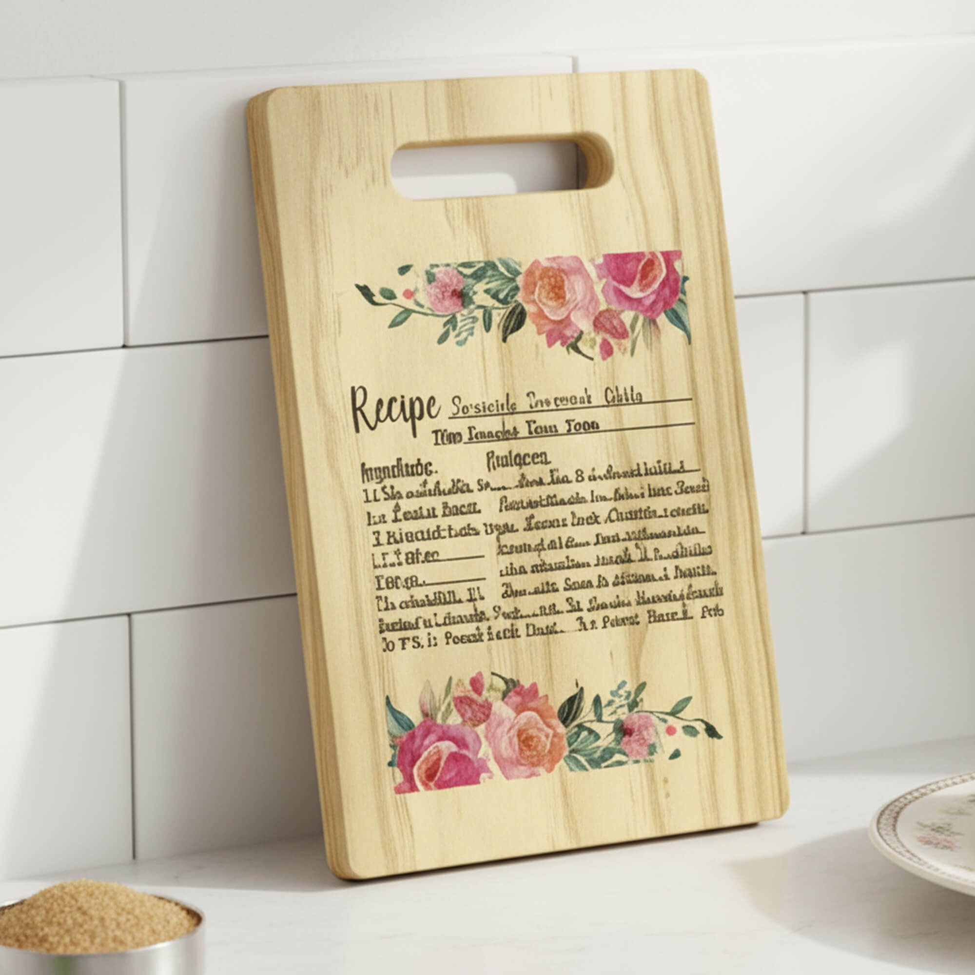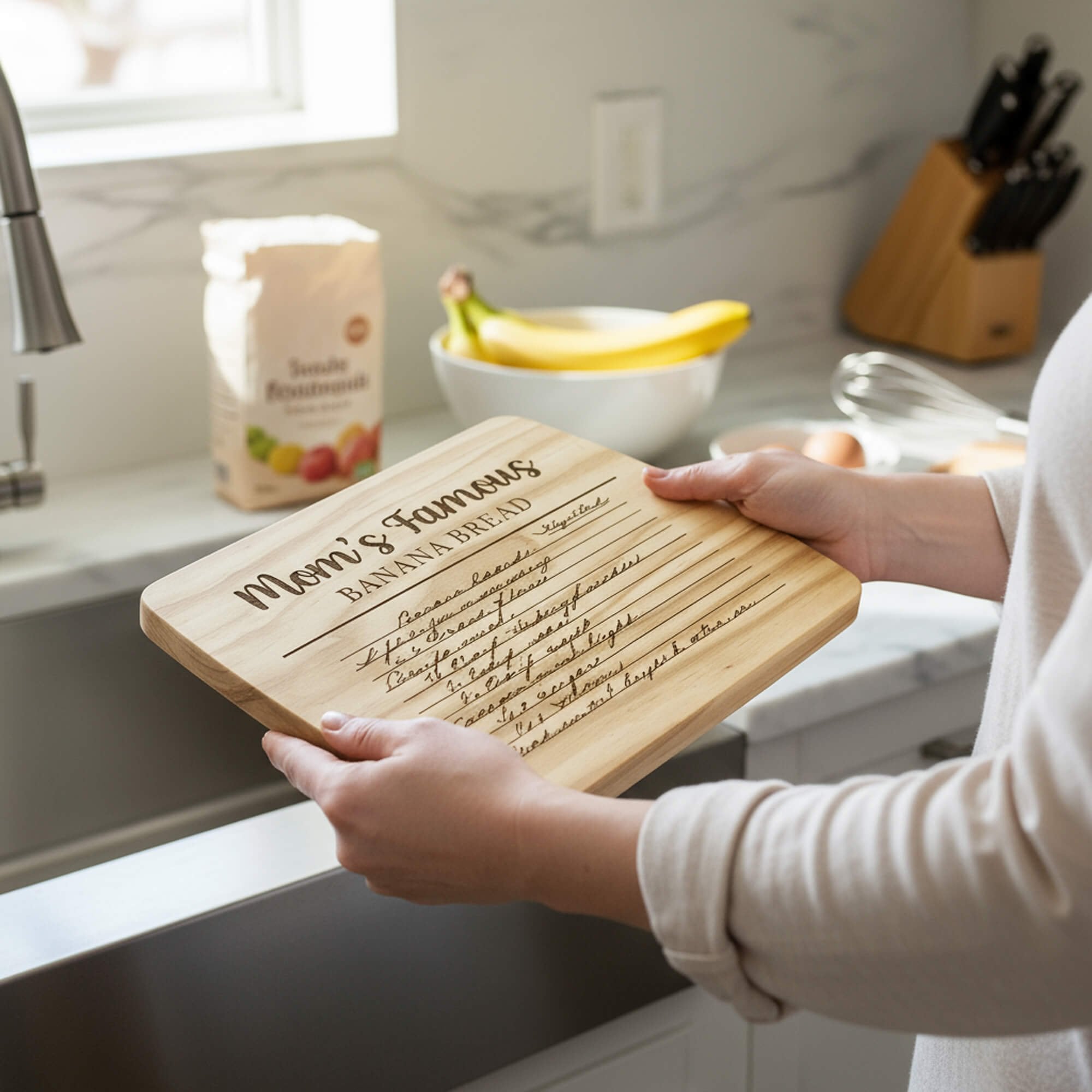 Have a favorite recipe that you want to preserve forever? Our natural wood cutting board will beautifully display your special recipe and add that personal touch to your kitchen. We use your own handwritten recipe so you can celebrate your loved one while preparing their delicious dishes. Our cutting board makes a priceless gift that your friends and family will cherish for a lifetime.