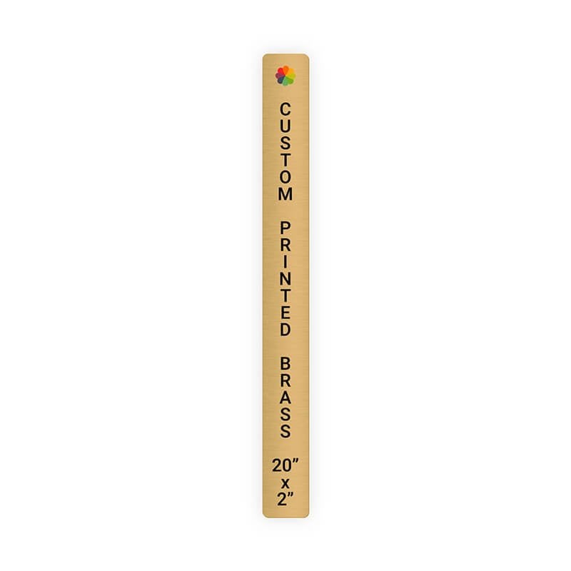 Our 20" x 2" Vertical Full Color Brass Signs add a cohesive, professional look to any office space. Includes several customization options, including company logo and optional UV coating, and can be installed practically anywhere!