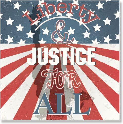 Dress up your interior with this 12x12 Lady Liberty and Justice for All Sign, UV printed on PVC plastic.