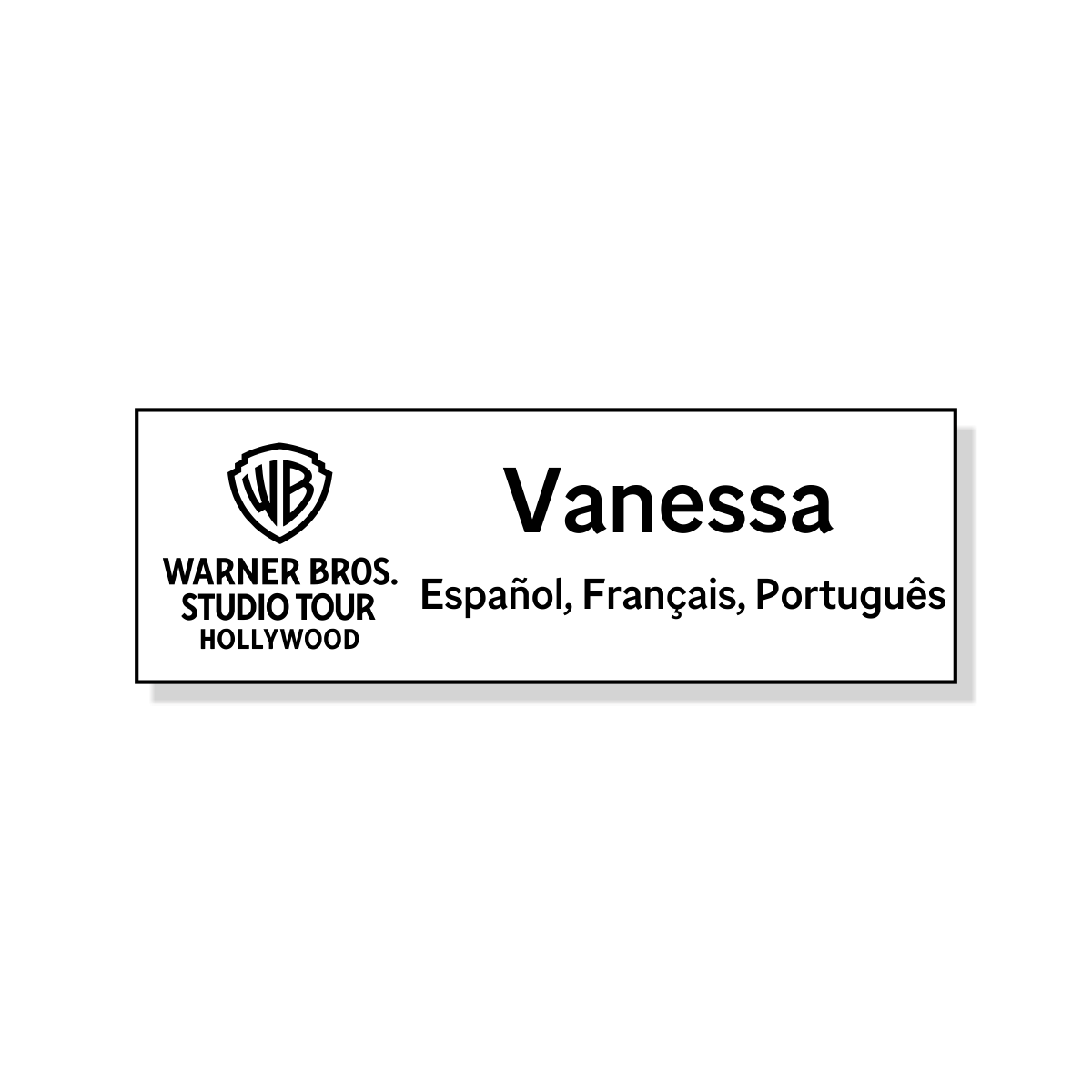 - Warner Bros Studio White Name Tag - 3 Languages