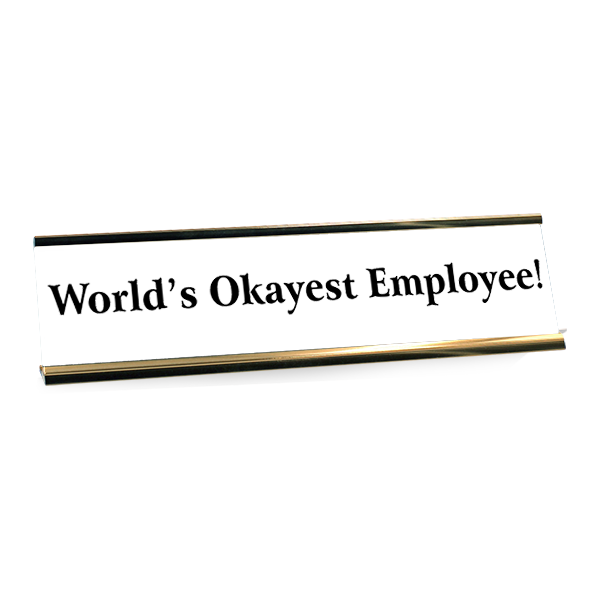 Made up of an array of high quality products, our World's Okayest Employee! Funny Name Plates will help to ensure you don't lose your sense of humor while at your place of work! Purchase yours today!